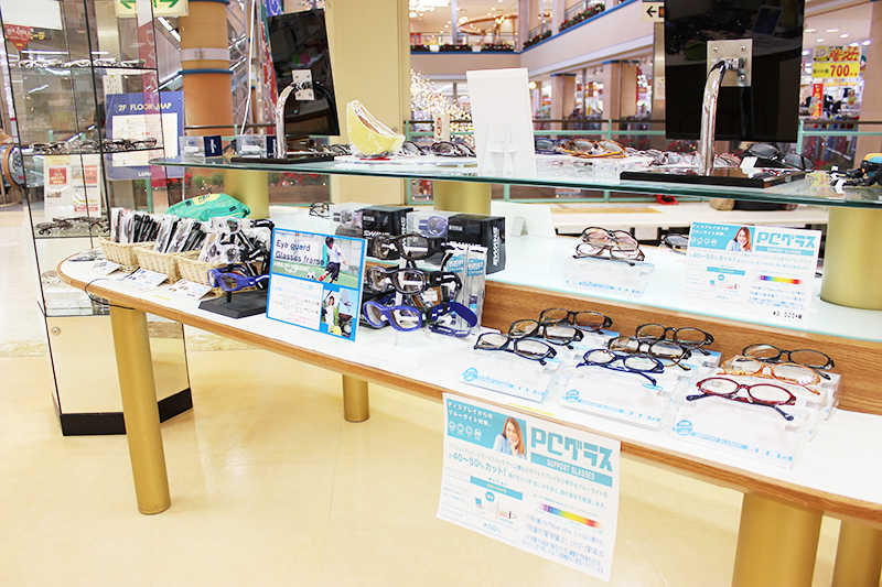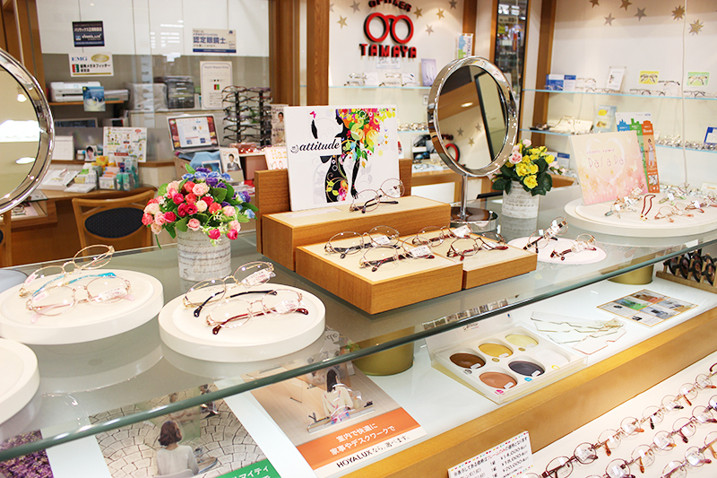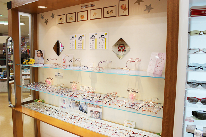 当店は大型ショッピングセンターの2階にあり、ファッションや雑貨をはじめ、たくさんの魅力的なアイテムを見ながら楽しくお買い物いただけます。オシャレの1歩をまずメガネ選びからはじめて見ませんか?