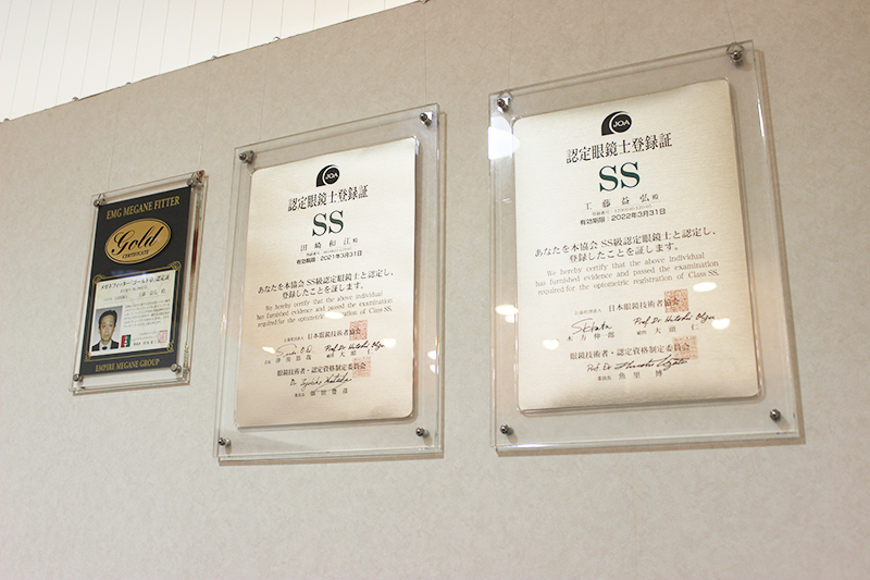 眼鏡作製技能士 2名 EMGメガネフィッター 1名 |